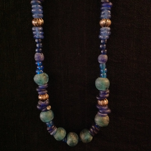 Sterling African Trade Beads Blue Green Glass
